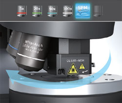 ![]() 新開發(fā)的小型SPM測頭 | OLS4500采用了裝在電動物鏡轉(zhuǎn)換器上的物鏡型SPM測頭。同軸、共焦配置了物鏡和微懸臂前端,所以切換SPM觀察時不會丟失觀察目標(biāo)點。不僅如此,新開發(fā)的小型SPM測頭提高了剛性,所以與傳統(tǒng)產(chǎn)品相比,減少了影像瑕疵并提高了可追蹤性。 |