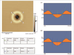 ![]() 曲率測量(硬盤的傷痕) | OLS4500能夠根據(jù)您的測量目的分析在各種測量模式中獲取的影像,并以CSV格式輸出測量結(jié)果。OLS4500有以下分析功能。