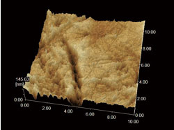 | ![]() 磁帶樣品。在電位影像中可以看出數(shù)百mV的電位 差分布于磁帶表面。這些電位差的分布,可以認(rèn)為 是磁帶表面的潤滑膜分布不均勻。 |