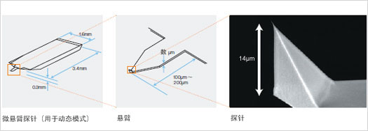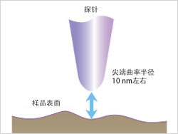 探針顯微鏡的原理 | 探針顯微鏡(SPM)是通過機(jī)械式地用探針在樣品表面移動,檢測出探針與樣品之間產(chǎn)生的力、電的相互作用,同時進(jìn)行掃描,從而得到樣品影像。探針尖端曲率半徑為10 nm左右。典型的探針顯微鏡是原子力顯微鏡(AFM),它通過檢測探針和樣品表面之間作用的引力和張力進(jìn)行掃描并獲得影像。探針顯微鏡能夠觀察納米級微觀形貌,可以捕捉到樣品最精細(xì)的一面。 |