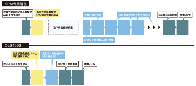 ![]() | OLS4500是把光學(xué)顯微鏡、激光顯微鏡、探針顯微鏡融于一體的一體機(jī),所以無需重新放置樣品,即可自由切換3種顯微鏡進(jìn)行觀察和評價。這3種顯微鏡各自持有優(yōu)異的性能,所以能夠高效輸出最佳結(jié)果。 |