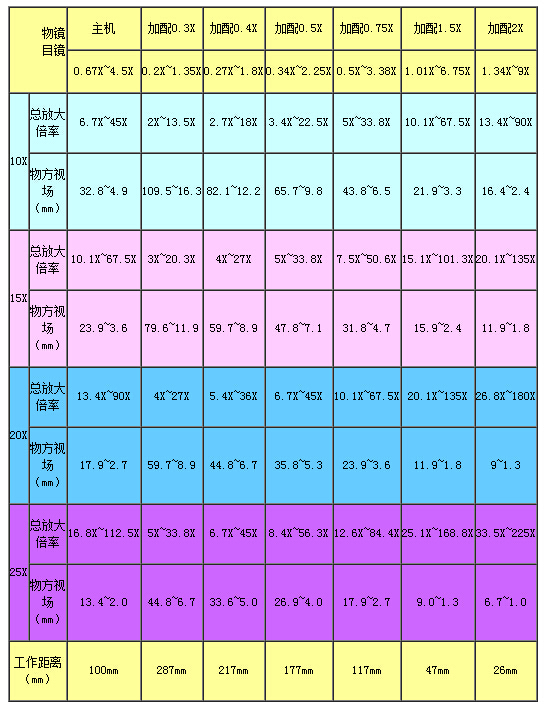 ★ 標準工作距離100mm,可擴展至26~287mm